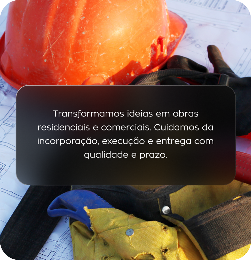 Da incorporação de empreendimentos à entrega das chaves, cuidamos de cada etapa com dedicação e técnica. Oferecemos soluções completas em construção civil.